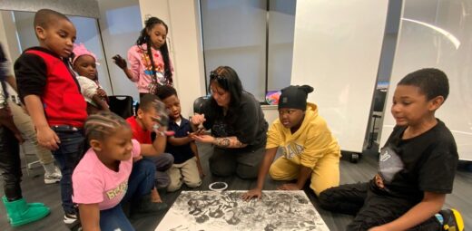 They also honed their collaboration skills by creating a large collage painting in honor of Women’s History Month, which is displayed at the Lofts on Arthington. This program was funded in partnership with the Alvin H. Baum Family Fund.