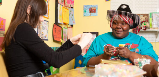 In fall 2023, MHL began partnering with Community Counseling Centers of Chicago (C4) to increase access to behavioral health services at its Chicago permanent supportive housing communities. C4 provides onsite services, collaborates with Mercy Housing Lakefront services staff on referrals, and delivers onsite group programming, including art-based mental health programming. Franny has been participating since shortly after it started, and she has a close relationship with Cammi, who facilitates the program at Harold Washington Apartments in Uptown three days a week.