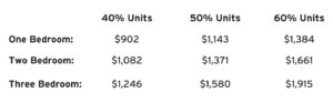 | # of Bedrooms | 40% Units | 50% Units | 60% Units |