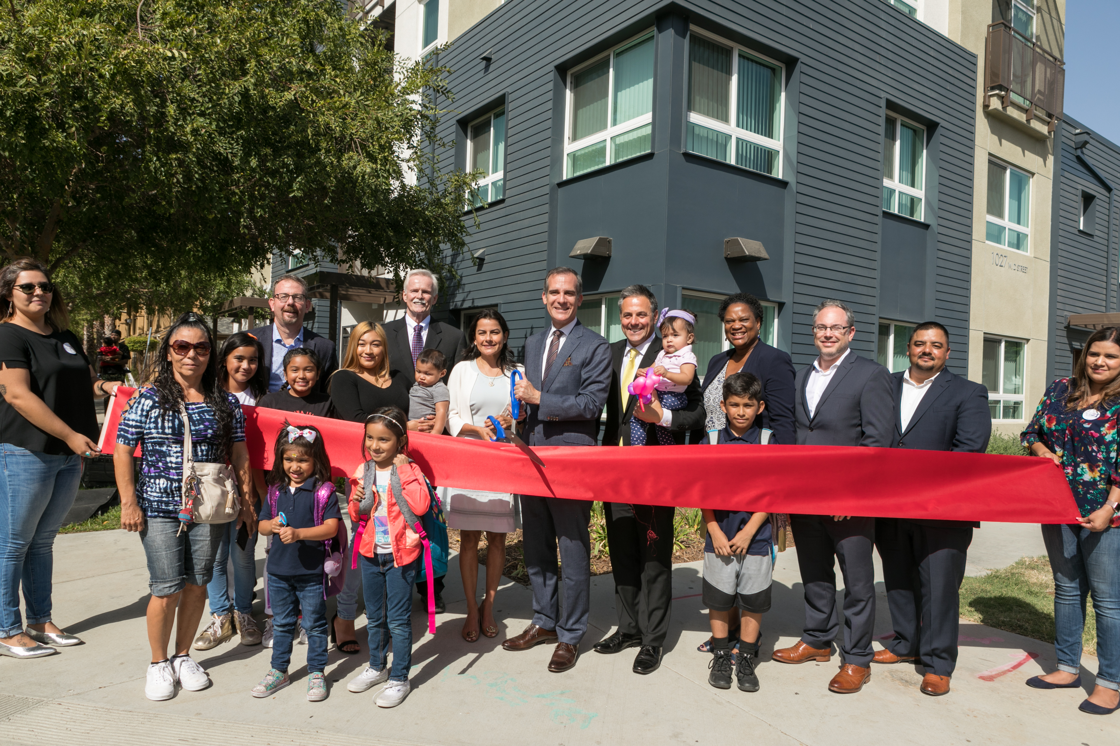 Last month, residents and elected leaders gathered for a street party in the Wilmington neighborhood of Los Angeles to celebrate the opening of 176 new affordable homes. Mercy Housing and Abode Communities developed this last phase of homes together, bookending a public housing rebuilding effort that began nearly 18 years ago. Back in 2000, the