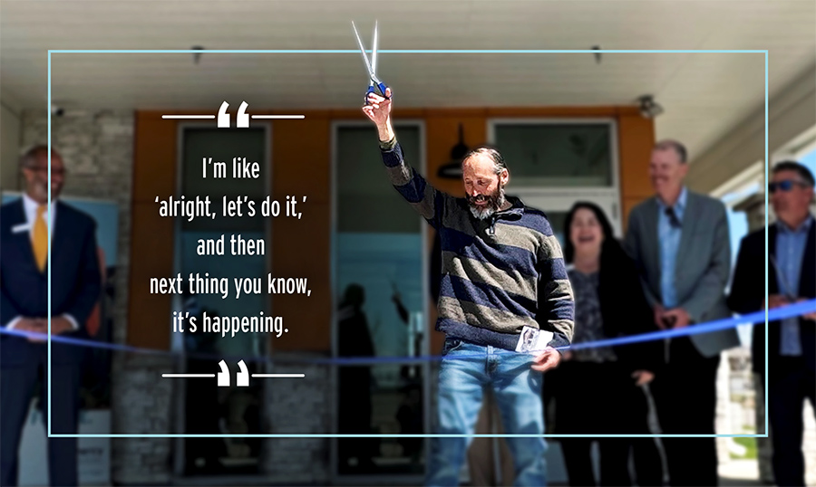 Ivan spoke at the grand opening celebration for Northfield Commons after moving into the brand-new community with his 9-year-old daughter.