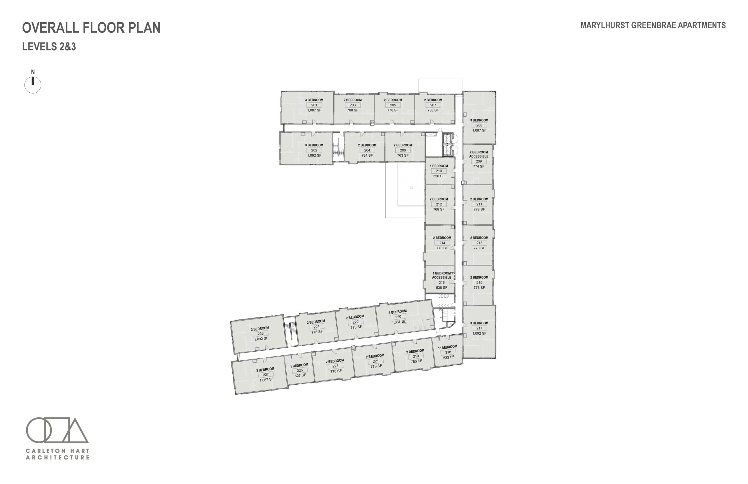 One, two and three-bedroom apartments.