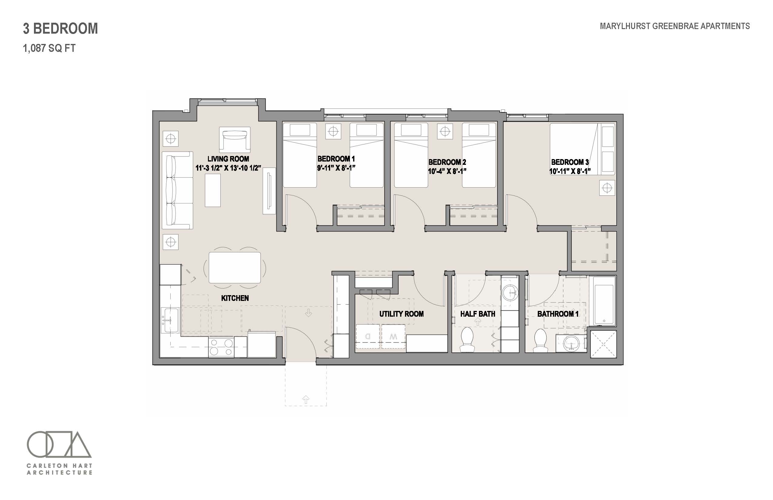 - Washer + Dryer included in 3BR units